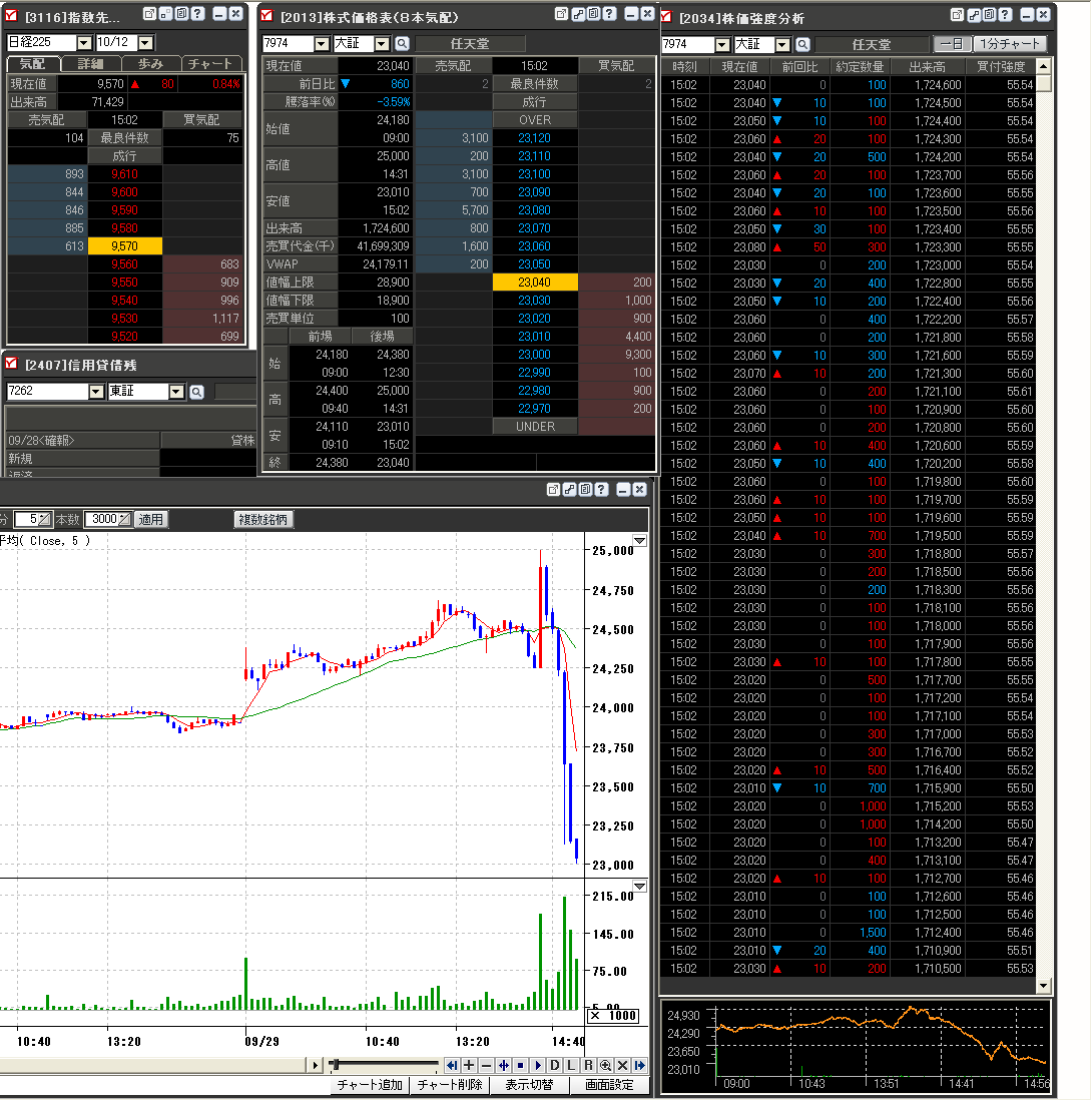 15時の終値は前日比マイナス780円となる2万3120円となったそうです。