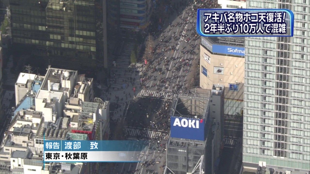 秋葉原:2年7カ月ぶり歩行者天国再開 コスプレ、実況中継も