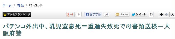 パチンコ外出中、乳児窒息死=重過失致死で母書類送検−大阪府警
