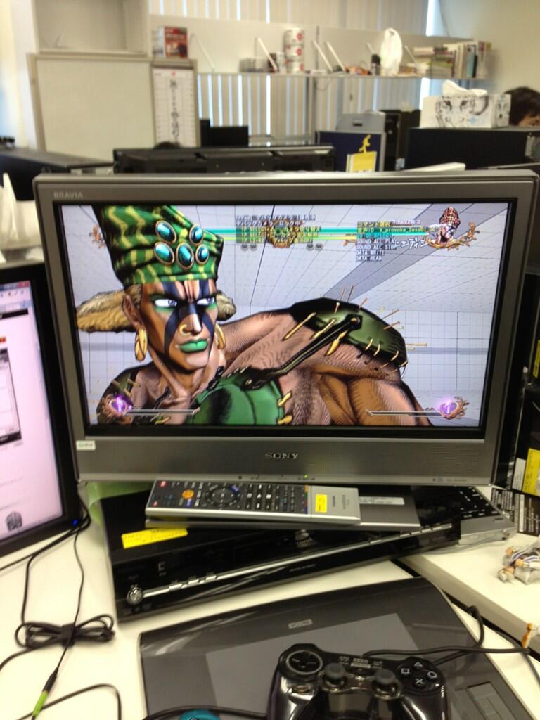 本日のジョジョチーム。エシディシのフェイシャルアニメを調整中です。昨夜の康一くんのツイートがすごい数リツイートされてると聞きました。そろそろ関係者に怒られそうだな。 twitter.com/PIROSHI_CC2/st…