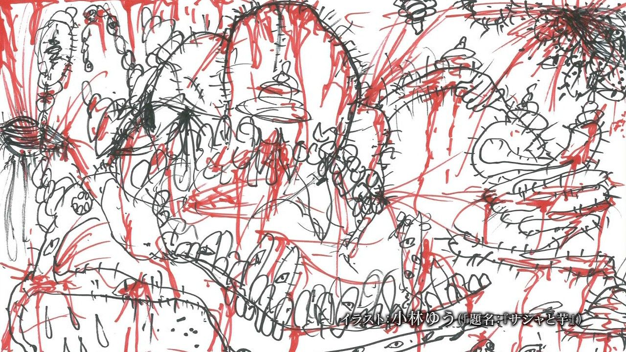 ◎小林ゆうですなう。進撃の巨人さんをご覧頂いた皆様ありがとうございますなう。大変恐縮ながら12話のエンドカードを務めさせて頂きましたなう。私が演じているサシャさんとお芋を描かせて頂きましたなう。大好きなお芋に幸せいっぱいのサシャさんですなう。躍動感を中心に描かせて頂きましたなう。