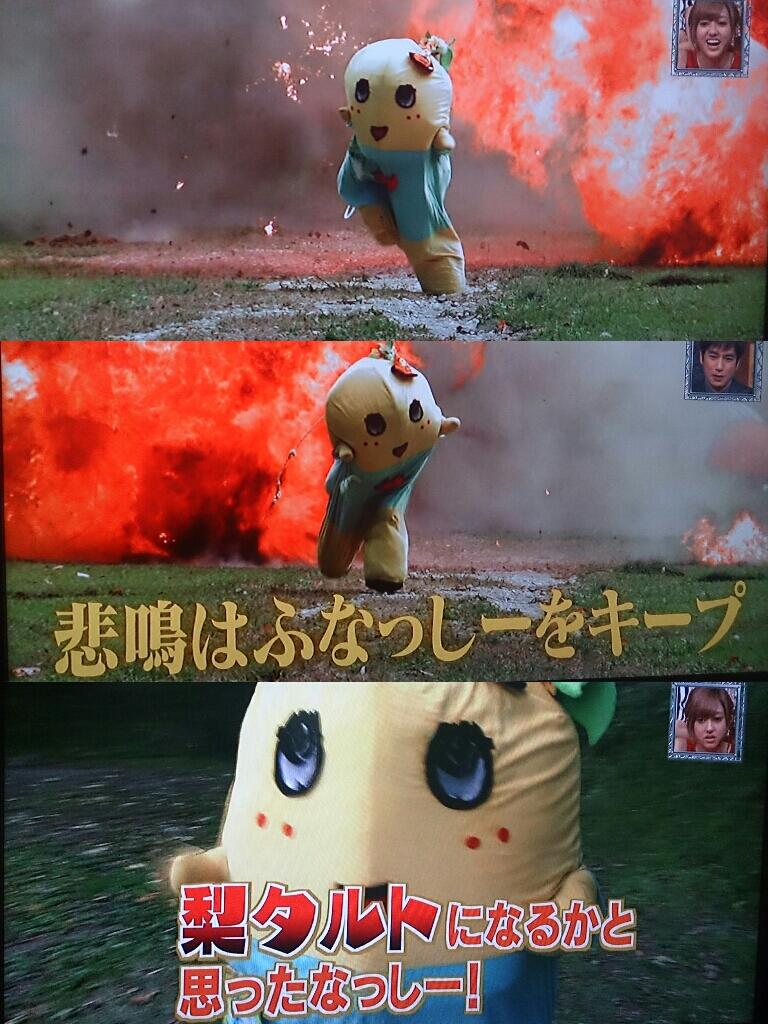 みんなーおつかれなっしー♪ヾ(。゜▽゜)ノちっちゃいおっさん演技上手だったなっしなー♪爆発も全部バラエティーだから大丈夫だったなっしー♪安心してなっしー♪
