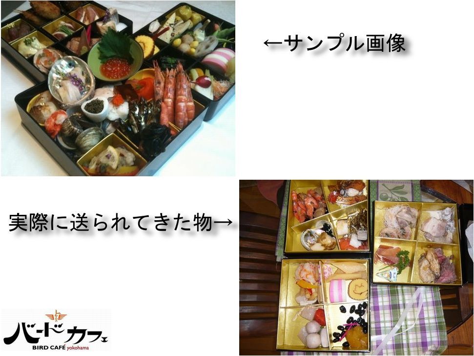 - バードカフェのせいで、普通におせち注文したくても怖くてできなくなったわ
