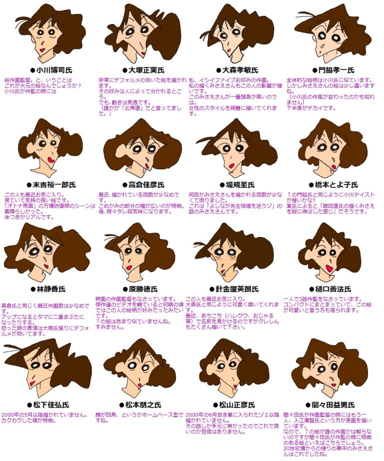 コメントで触れられていた、作画監督ごとに激変する『クレしん』みさえ一覧