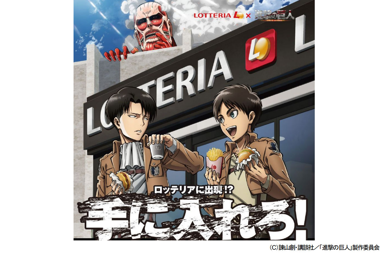 株式会社ロッテリア(本社:東京都新宿区、代表取締役社長:佃 孝之、以下:ロッテリア)は、単行本の発行部数が 3,600 万部を突破した「進撃の巨人」とのコラボレーション企画として、2014年4月25日(金)より『進撃の巨人セット』を全国のロッテリアにて数量限定にて発売いたします。