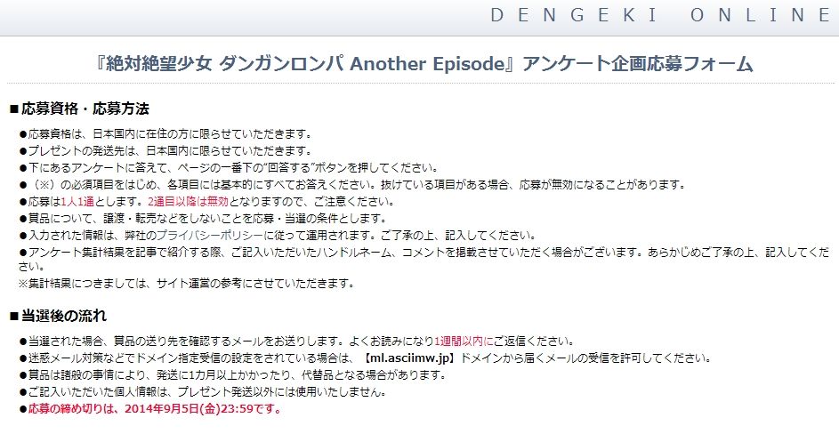 電撃 - 『絶対絶望少女 ダンガンロンパ Another Episode』アンケート企画応募フォーム