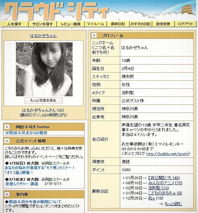 同タイミングで、岡田斗司夫氏と親密な付き合いであった「はるかぜちゃん」も