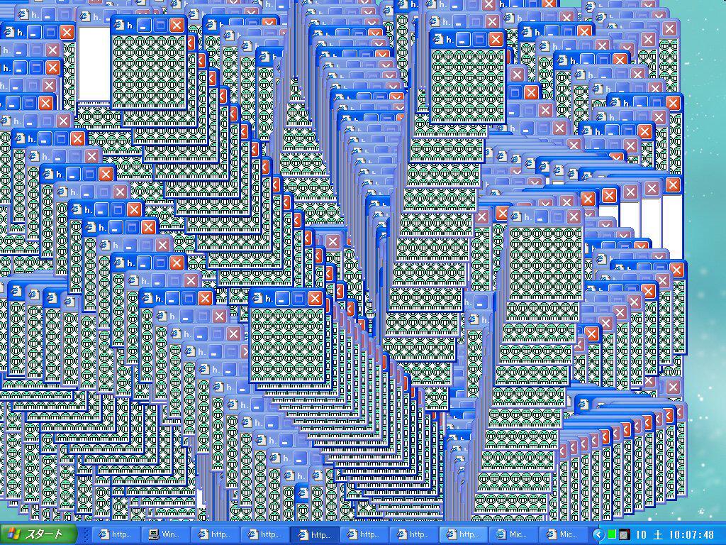 ブラクラ。こんな風にウィンドウを無限に開いていくやつ。FDドライブをガタガタさせるのとかもあった。いまやFDドライブ自体が無い。 #インターネット老人会 pic.twitter.com/kNXrqR36pW