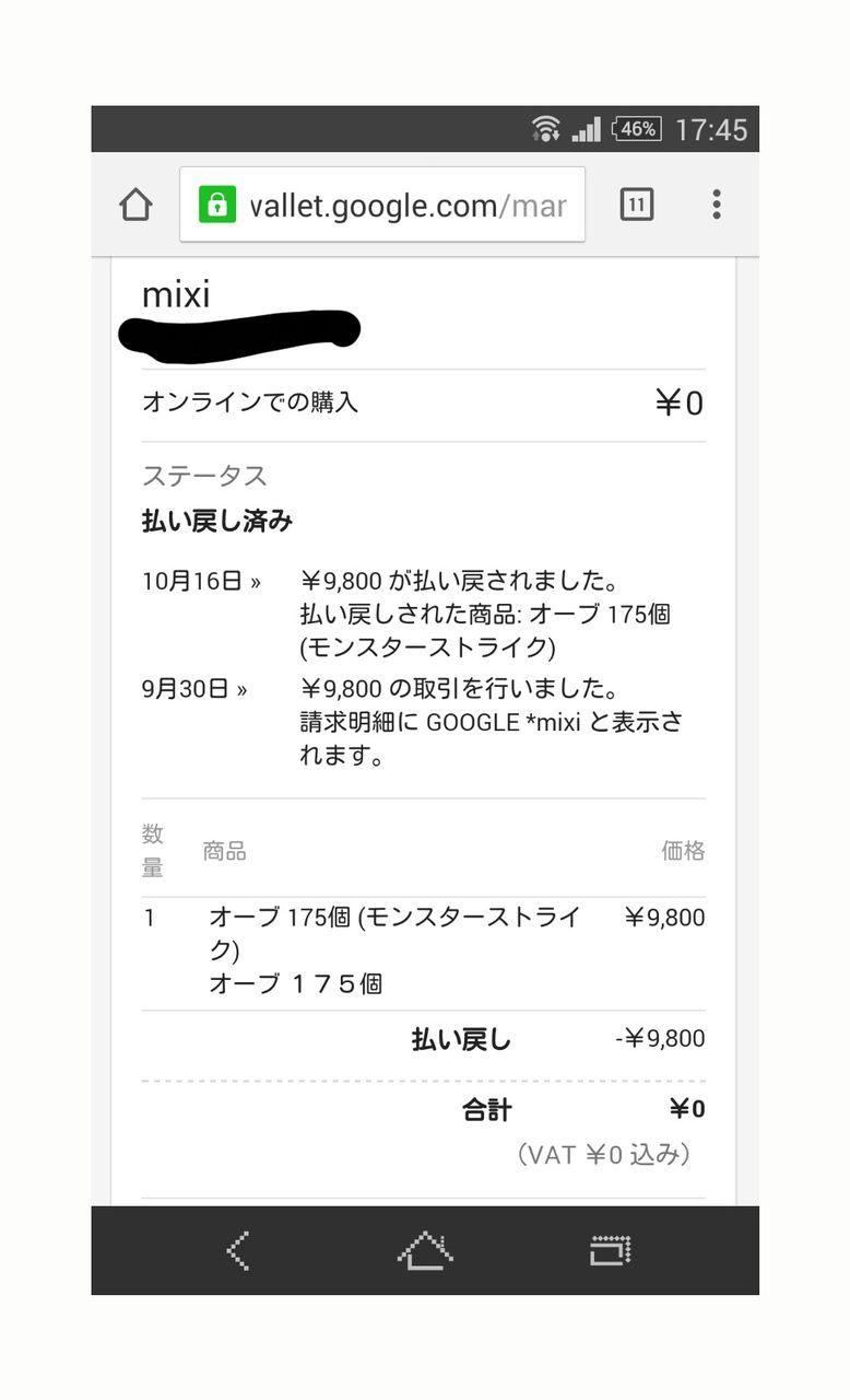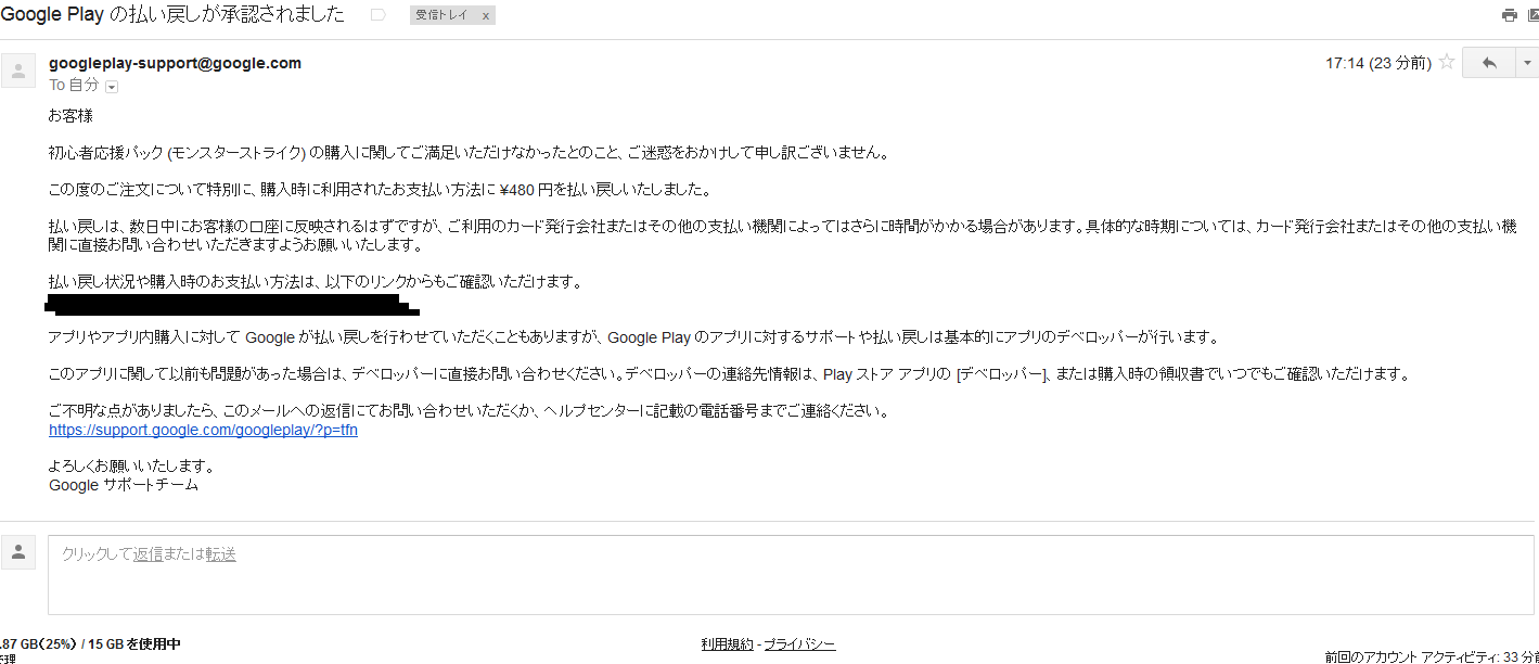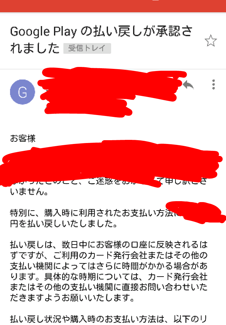いや 普通にgoogleから返金してもらえたで