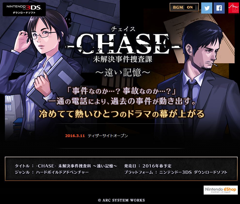 アークシステムワークスは、3DS用ソフト『-CHASE- 未解決事件捜査課 〜遠い記憶〜』を2016年春に配信予定と発表しました。価格は未定です。