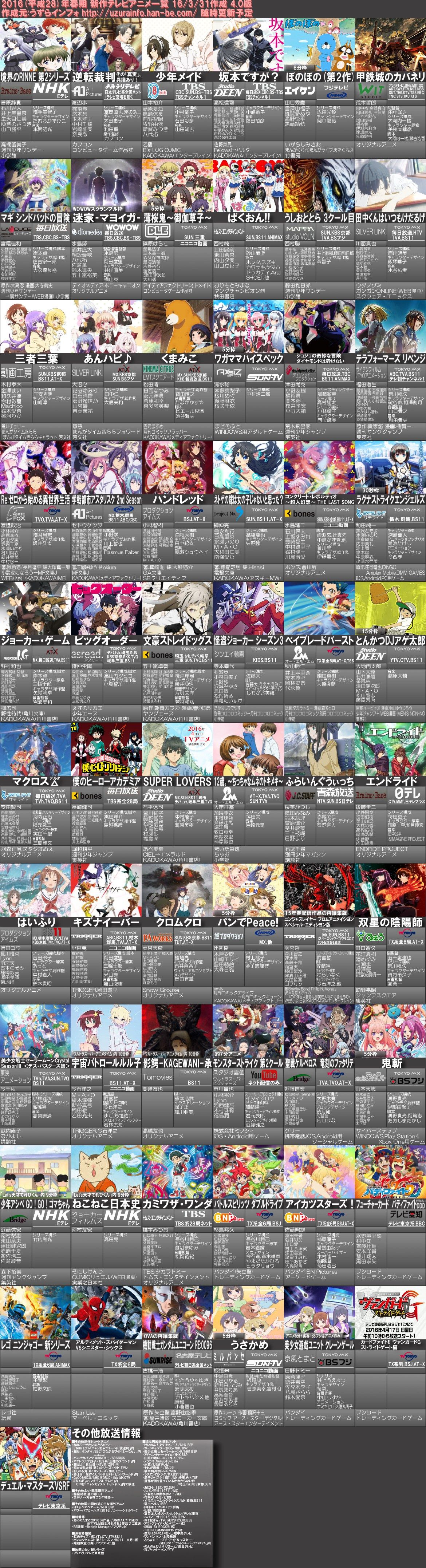 2016年春期 テレビアニメ一覧画像 うずらインフォ