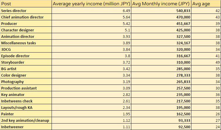 外国人「アニメ関係者の業種ごとの年収を見てみよう」→「破産するレベルだ」 : 海外の万国反応記