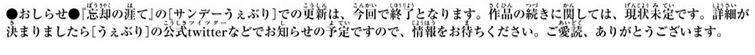 『忘却の涯て』の「サンデーうぇぶり」での更新は今回が終了となります。