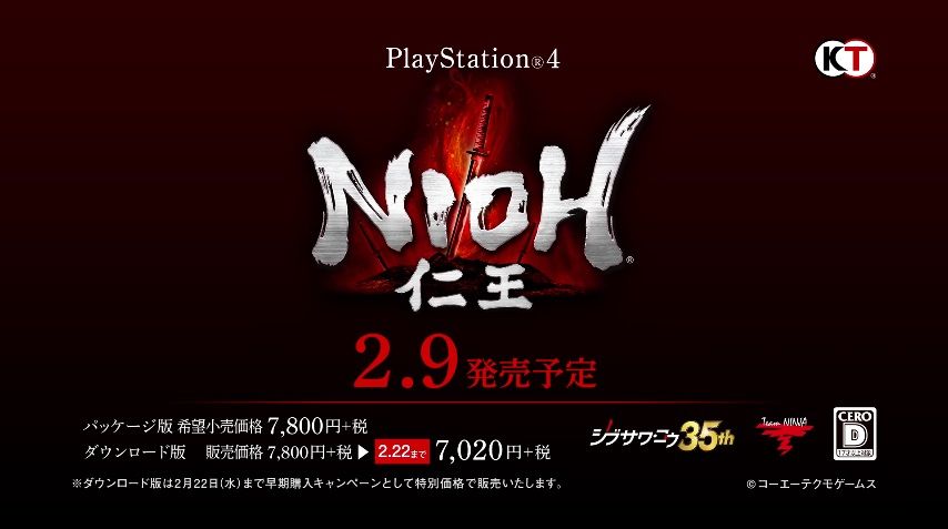 コーエーテクモゲームスは本日(2017年1月10日),同社が2017年2月9日に発売を予定しているPS4用アクションRPG「仁王」のイベントムービー「くノ一 お勝」を公開した。