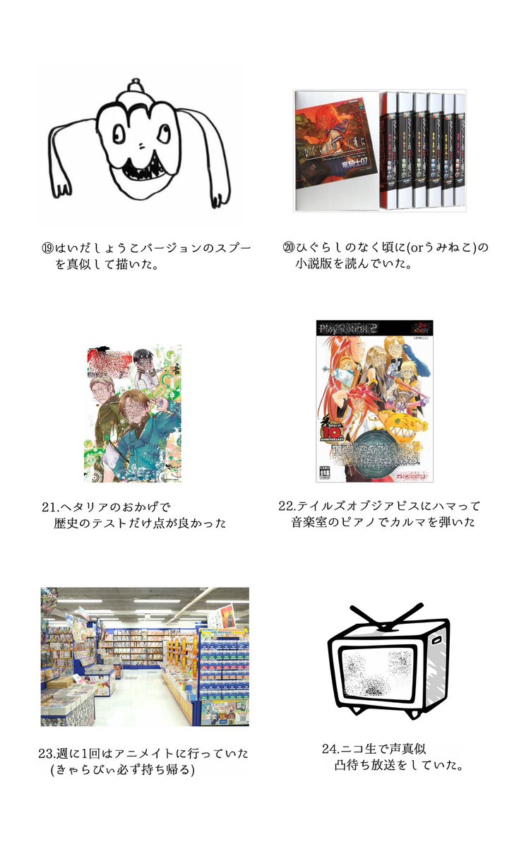 20代ではないですけどヘタリアのおかげで歴史はよかったりリボーンにハマってたり今でもイラストの横に\(^o^)/描きますね