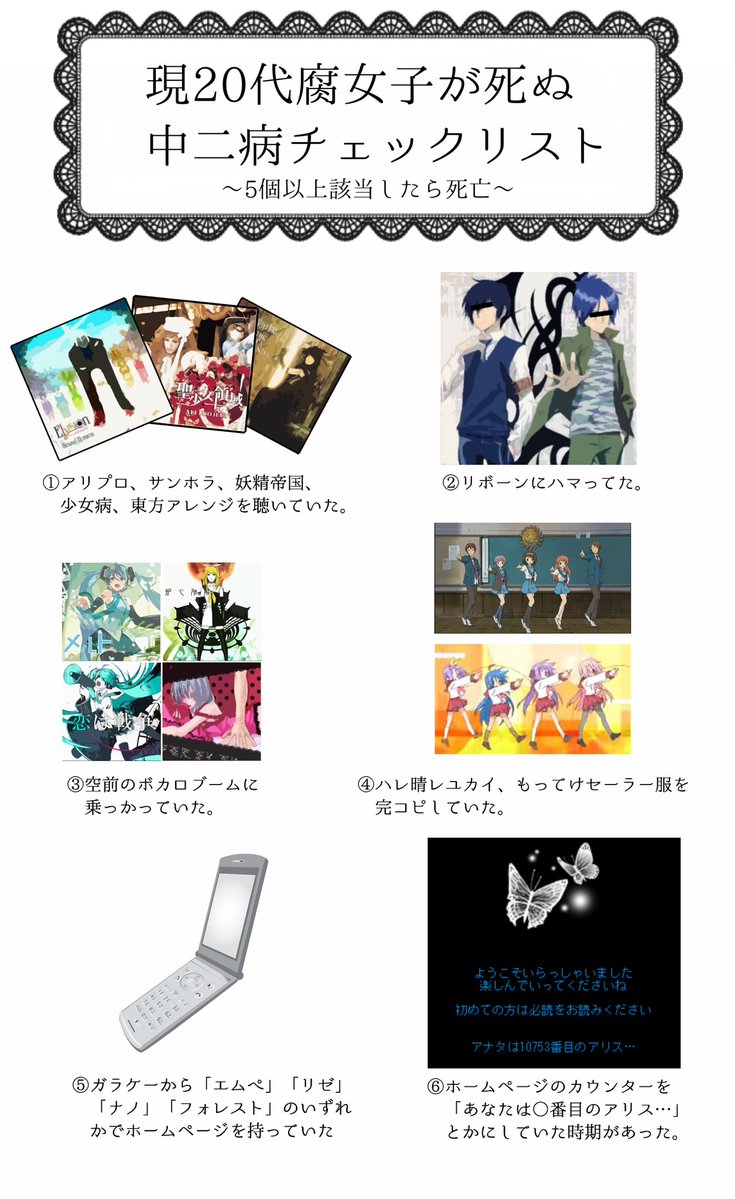 現20代腐女子が死ぬ中二病チェックリスト pic.twitter.com/iyV83Tf66O