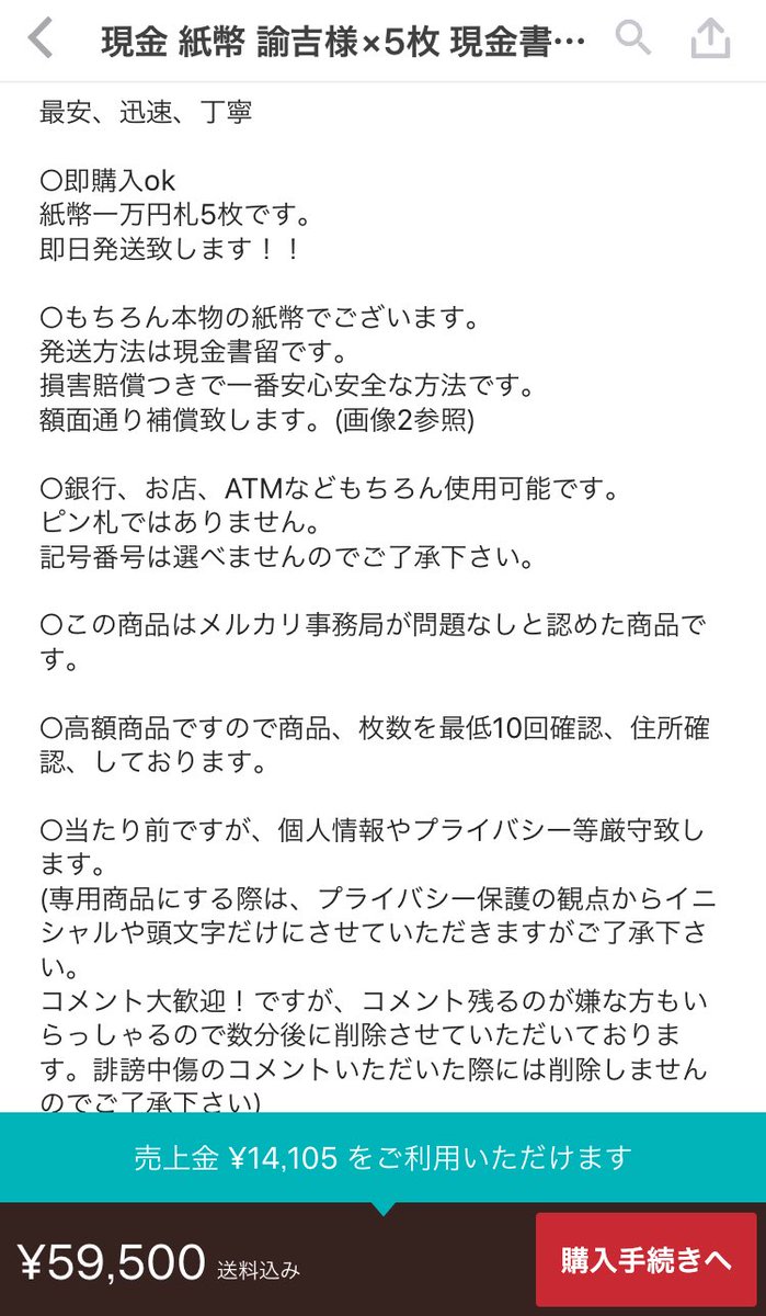 - そもそも現金の出品ってメルカリでも規約違反じゃないの?