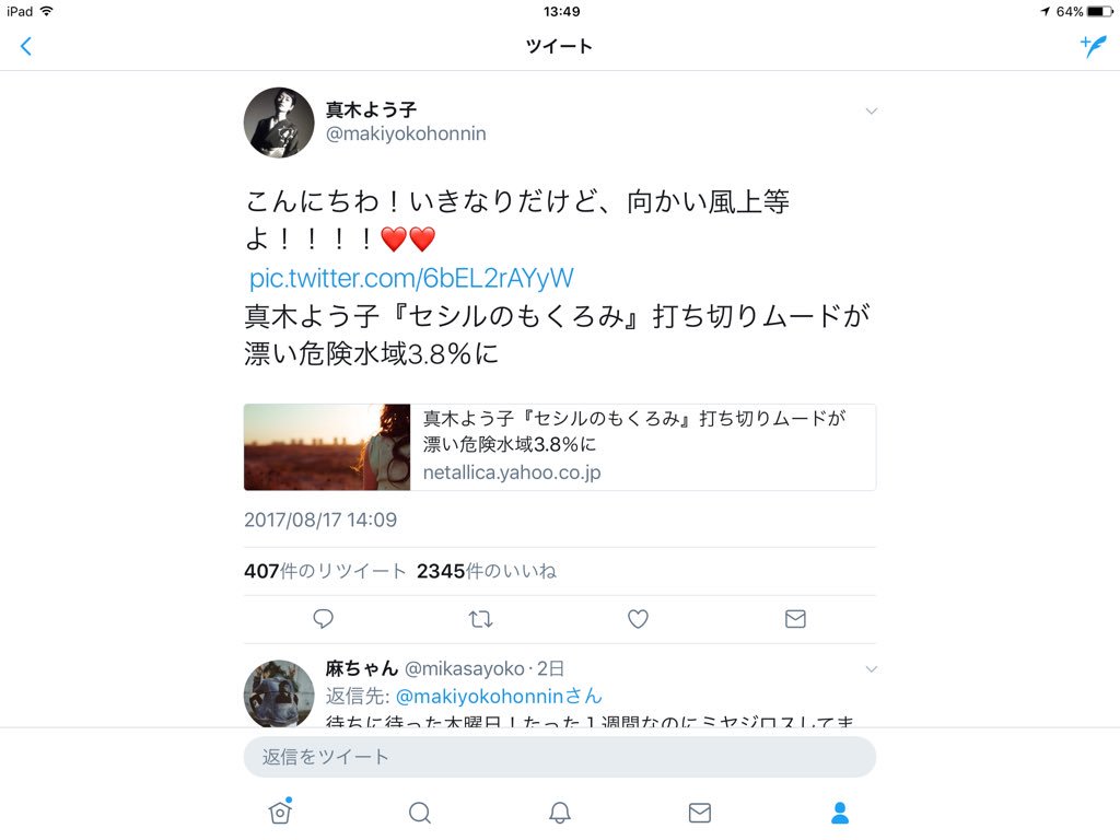 — 真木よう子 (@makiyokohonnin) 2017年8月20日