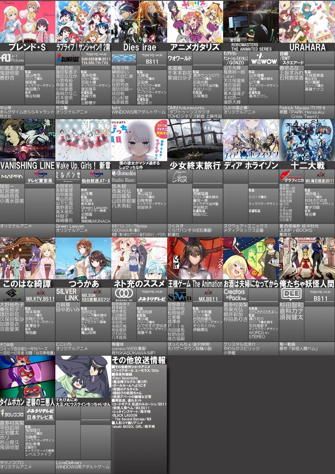 2017年秋期 テレビアニメ一覧画像 うずらインフォ