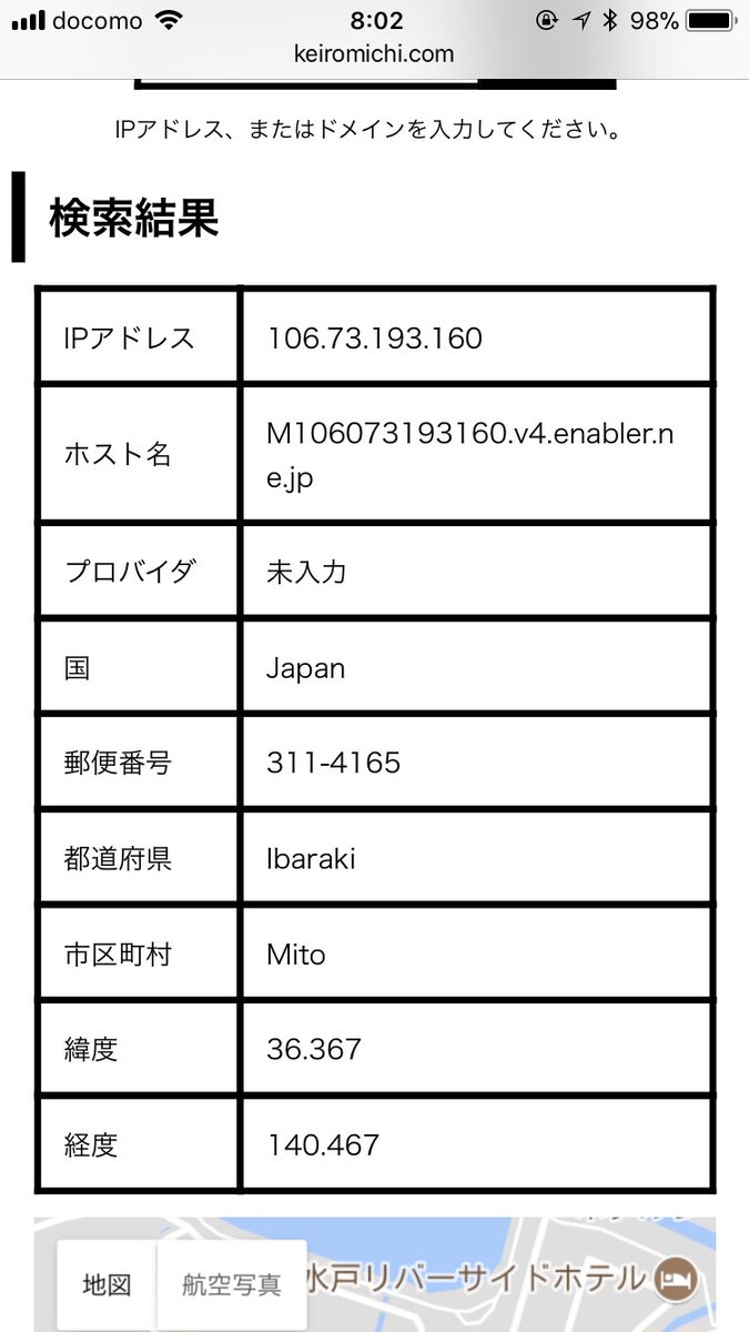 生IPでkeiromichiしたら都道府県レベルで違うってことは秘密だ