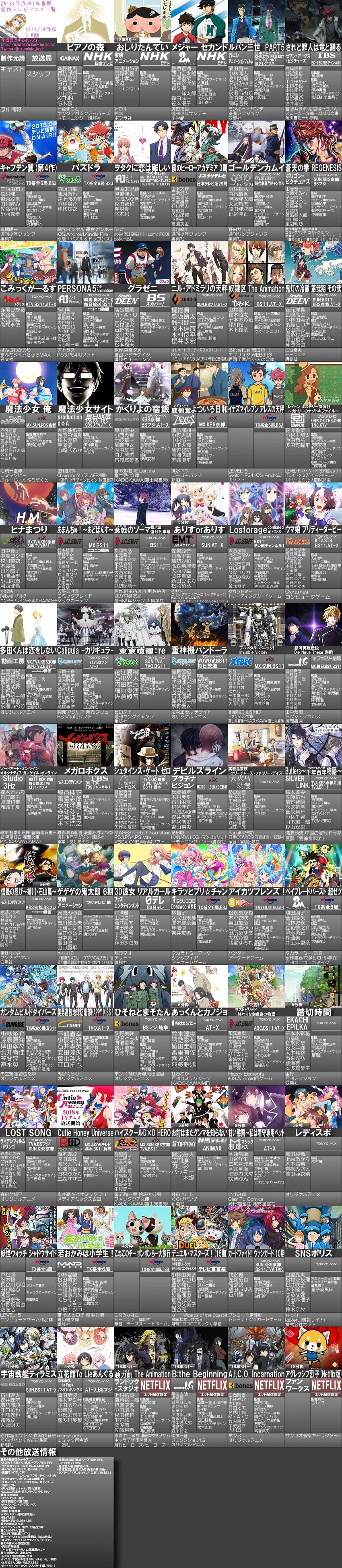 2018年春放送開始予定のテレビアニメ一覧です。