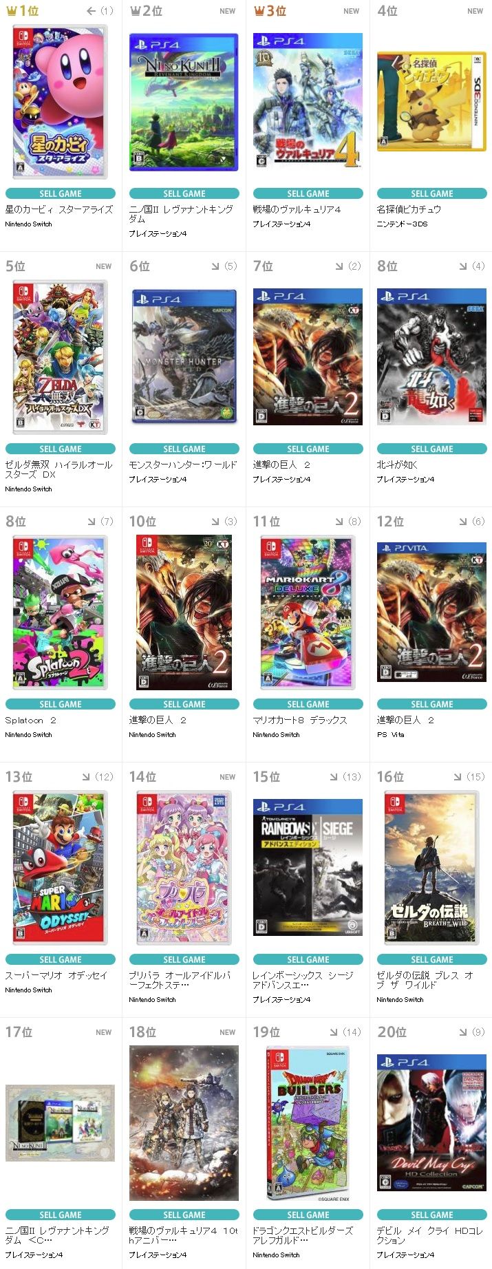 【TSUTAYAランキング】 『二ノ国2 レヴァナントキングダム』 待望の新作が2位にランクイン! 『戦場のヴァルキュリア4』、『名探偵ピカチュウ』なども上位に!