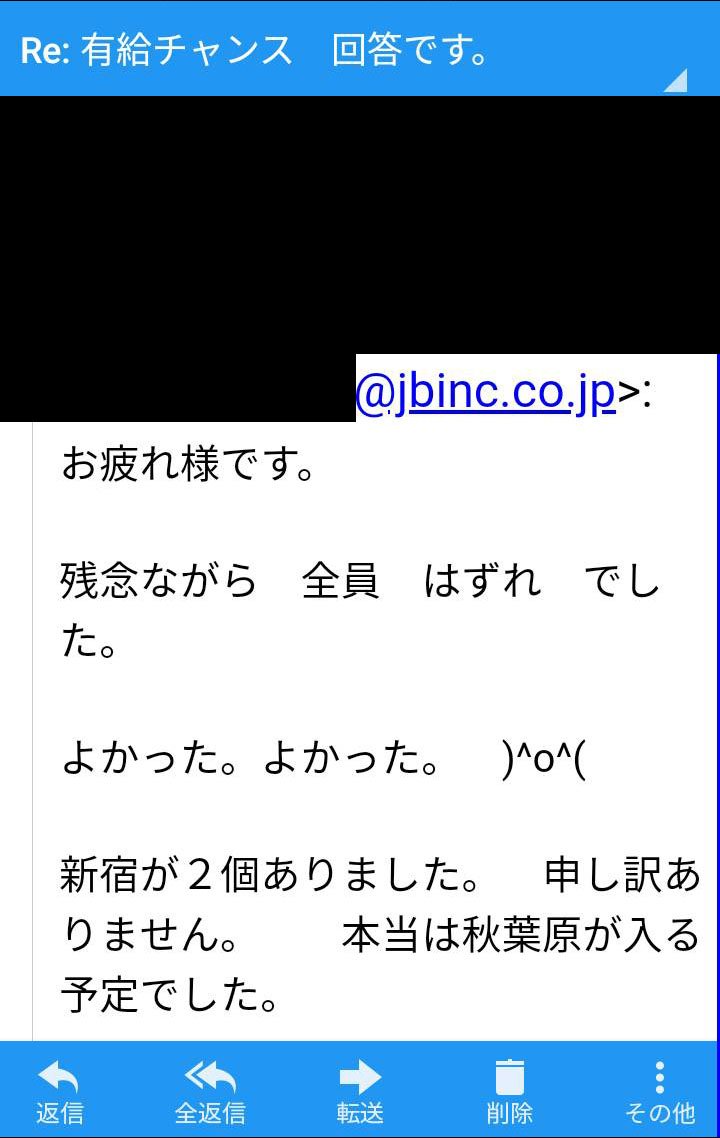 サントリーグループの自販機大手ジャパンビバレッジの支店長が従業員に送ったヤバすぎるメールを入手。「有給チャンス」というクイズを出され、正解しないと有給休暇を取得できない。それどころか不正解だと「降格」される。降格のリスクを冒さないと有休取れないとか、どんなブラック企業だよ… pic.twitter.com/zBLQ2TQCeJ