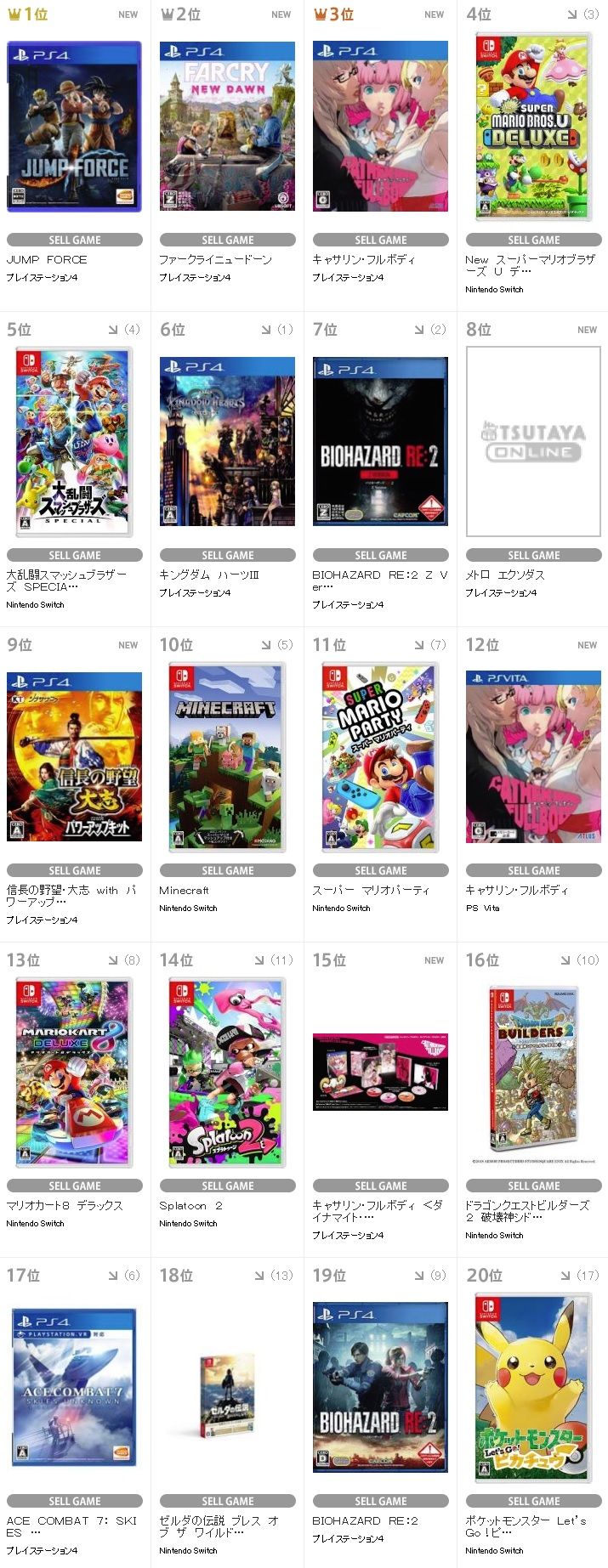 【TSUTAYAランキング】 今週も『キングダムハーツ3』、『バイオ RE:2』、『マリオ』がトップに! 新作とはwwwww