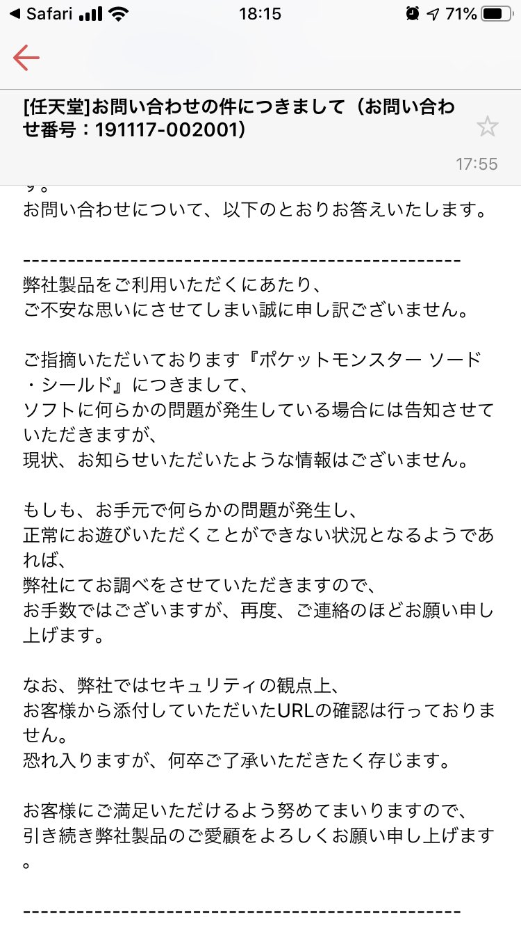 任天堂からの正式回答きました。 pic.twitter.com/tKD2oeJHyT