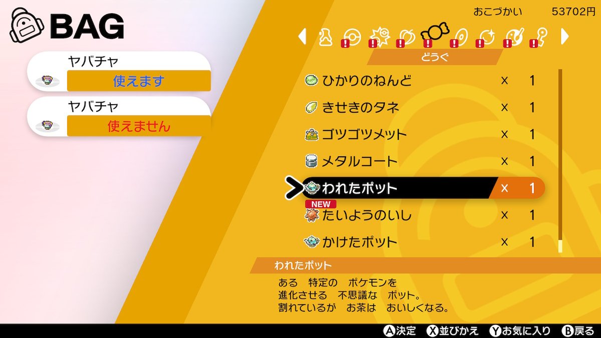 ヤバチャ二種。底にマークがある子が真、無い子が贋作?19体目でやっと出た、、。進化に使うアイテムが違う。 #ポケモン剣盾 #NintendoSwitch pic.twitter.com/DFdEbYGMXj
