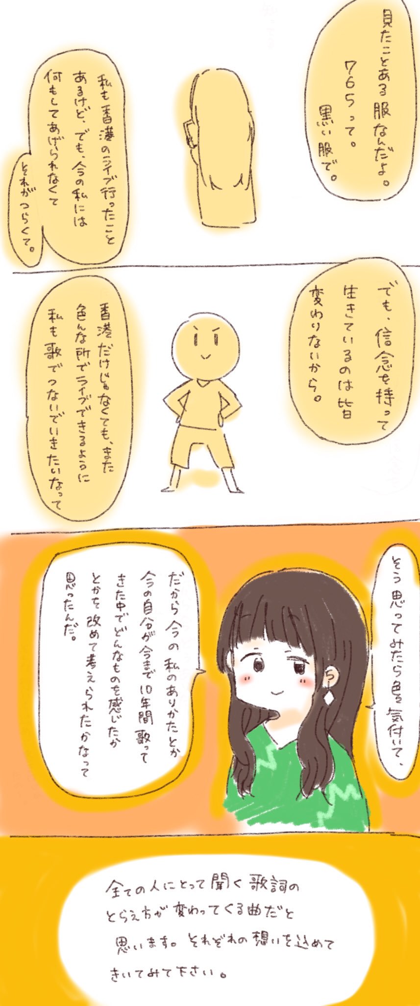 中国のファンです。先日ライブで上今井さんが香港のために歌詞を作ったと聞きましたが、内容は中国から見るとかなり違っていて、誤解されやすいです。私が聞いたのは、一枚の写真に感銘を受けたからです。悪意はないと信じたいです。