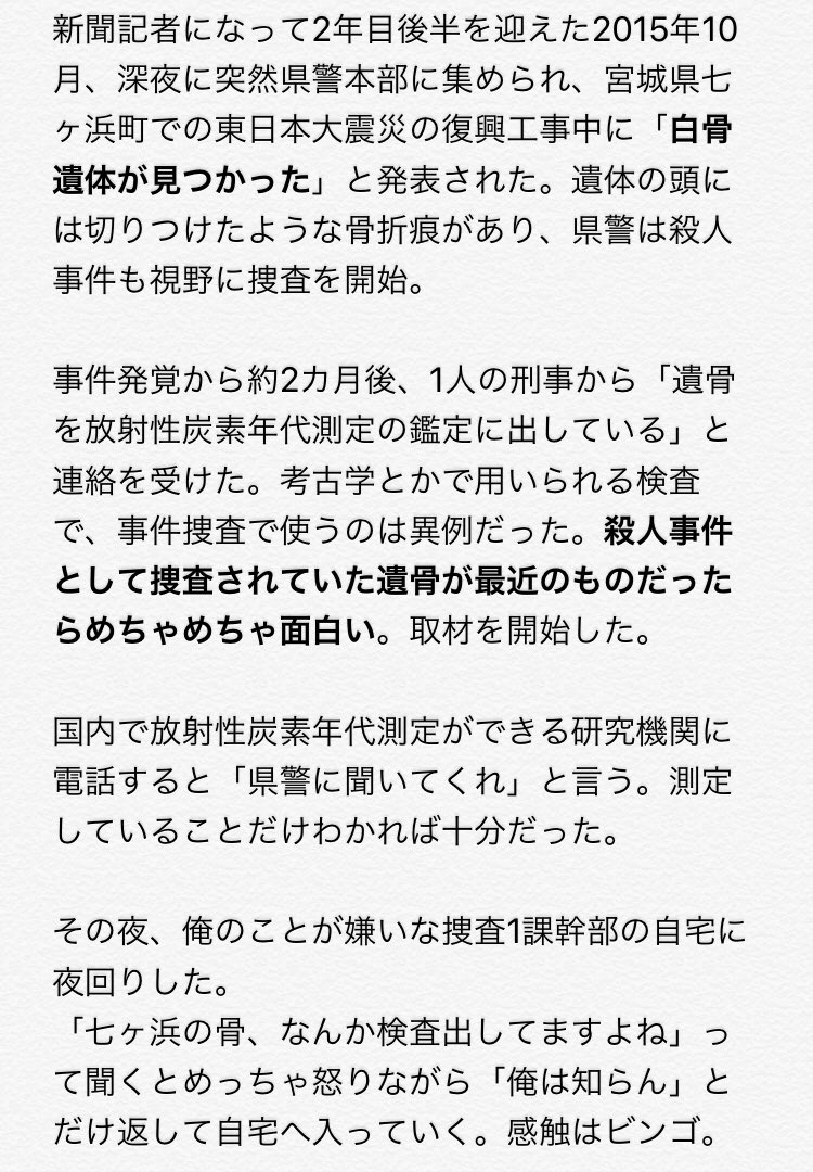 - この記者の腹立つところは骨や事件性になりそうなことを見てめちゃくちゃ面白いって書いてるその思考なんだよな(