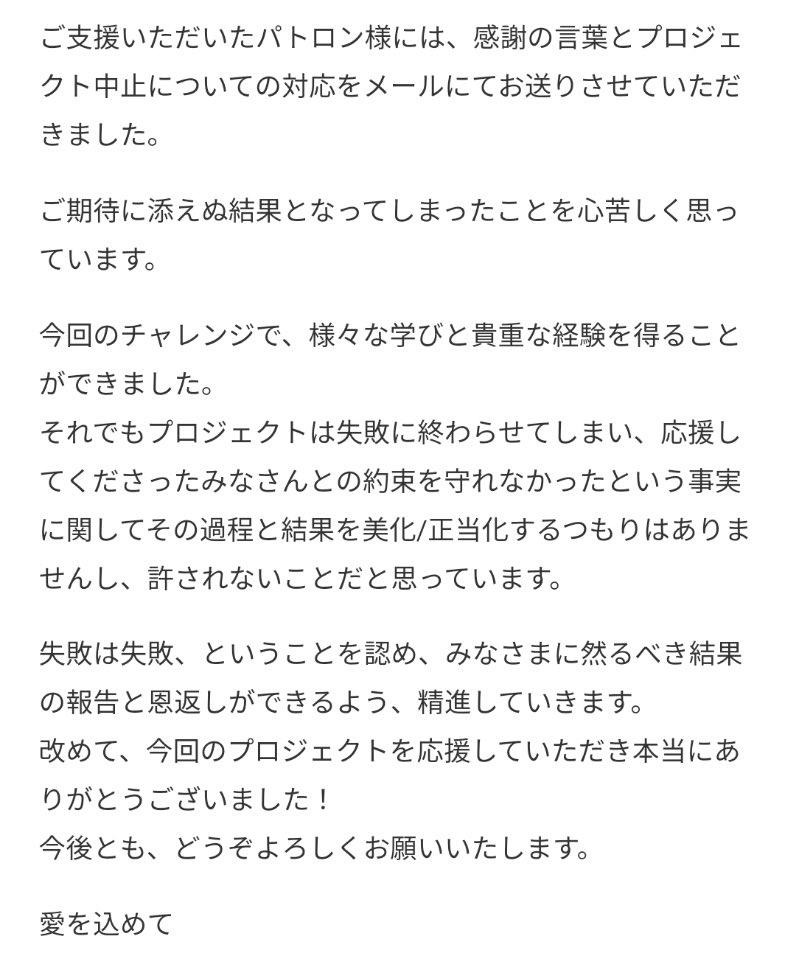 - こういうのあるからクラウドファンディングとか胡散臭くて嫌なんだよ