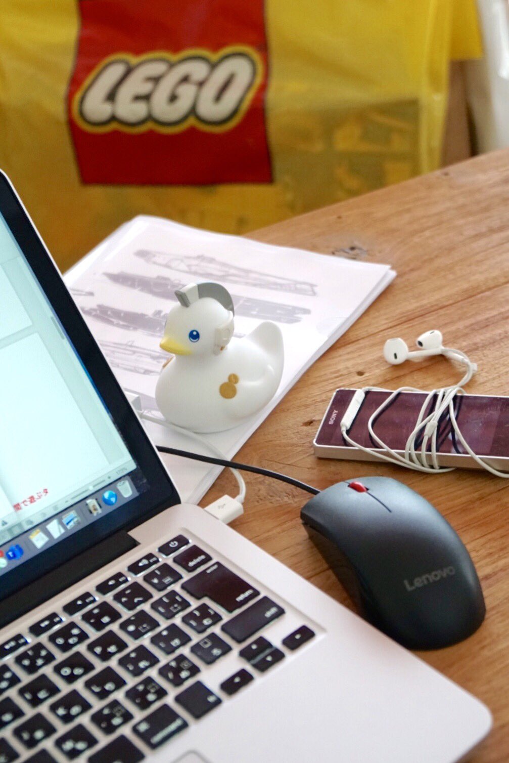 MacブックにLenovoのマウス、ノートにはLightningケーブル刺さってるのに、SONYのスマホにiPhone純正イヤホン。