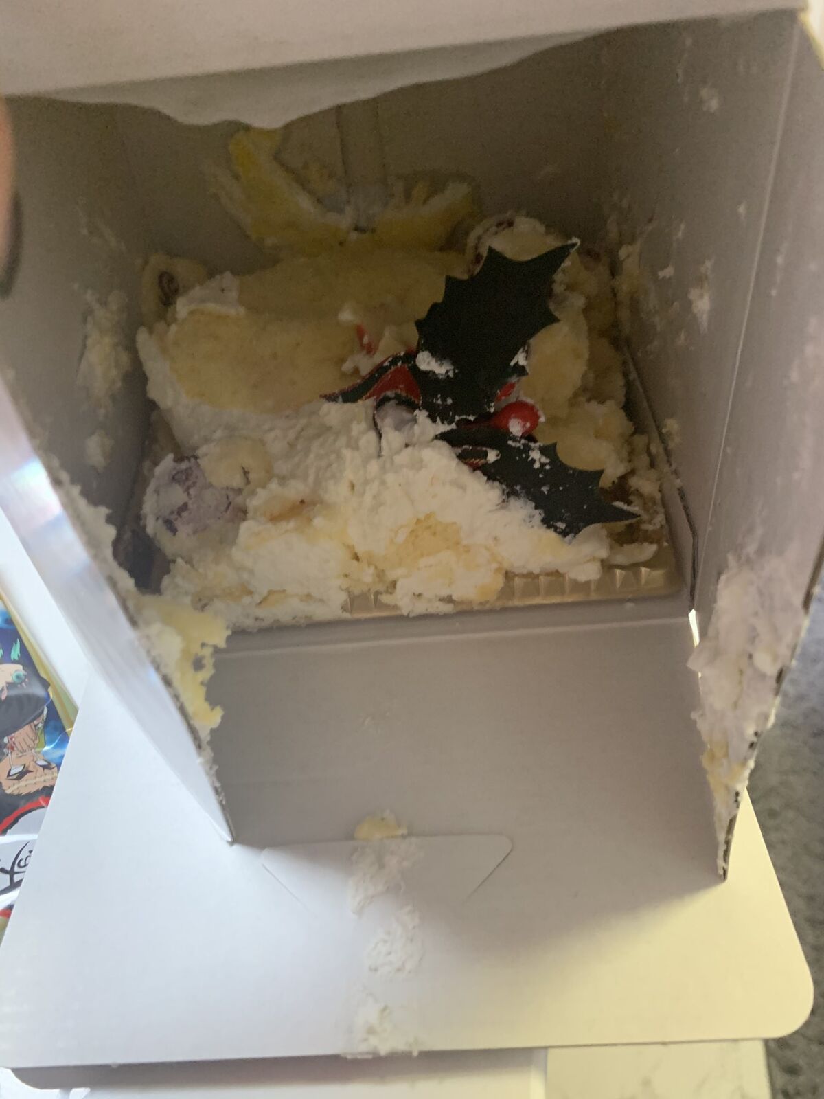 「なにしたらこうなるん?」とのことですが、ケーキをゆうパックで送ればだいたいこうなると思いますね。