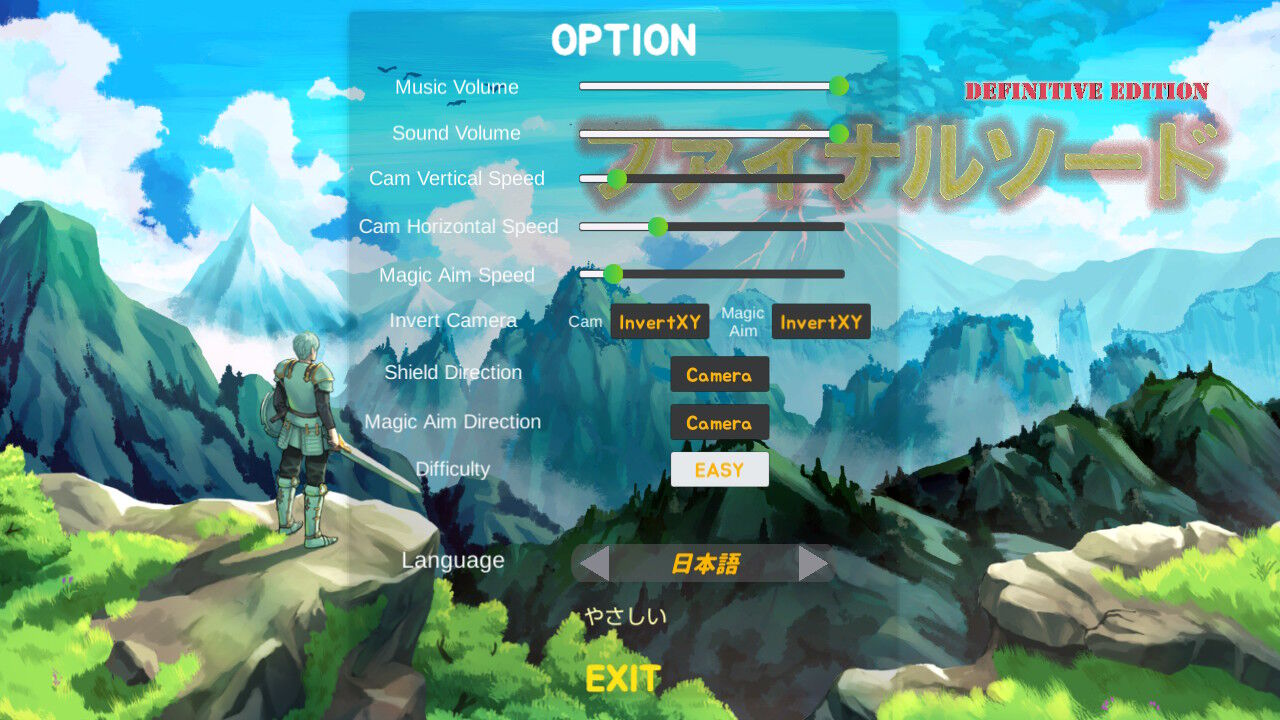 ファイナルソードDEはオプションからふつう、やさしいの二通りの難易度が選べるようになってるみたいですね