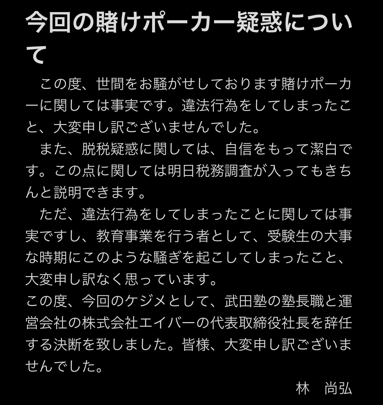 - 最低でも違法賭博で儲けた分は脱税してるじゃんwwwなにが潔白だよwww