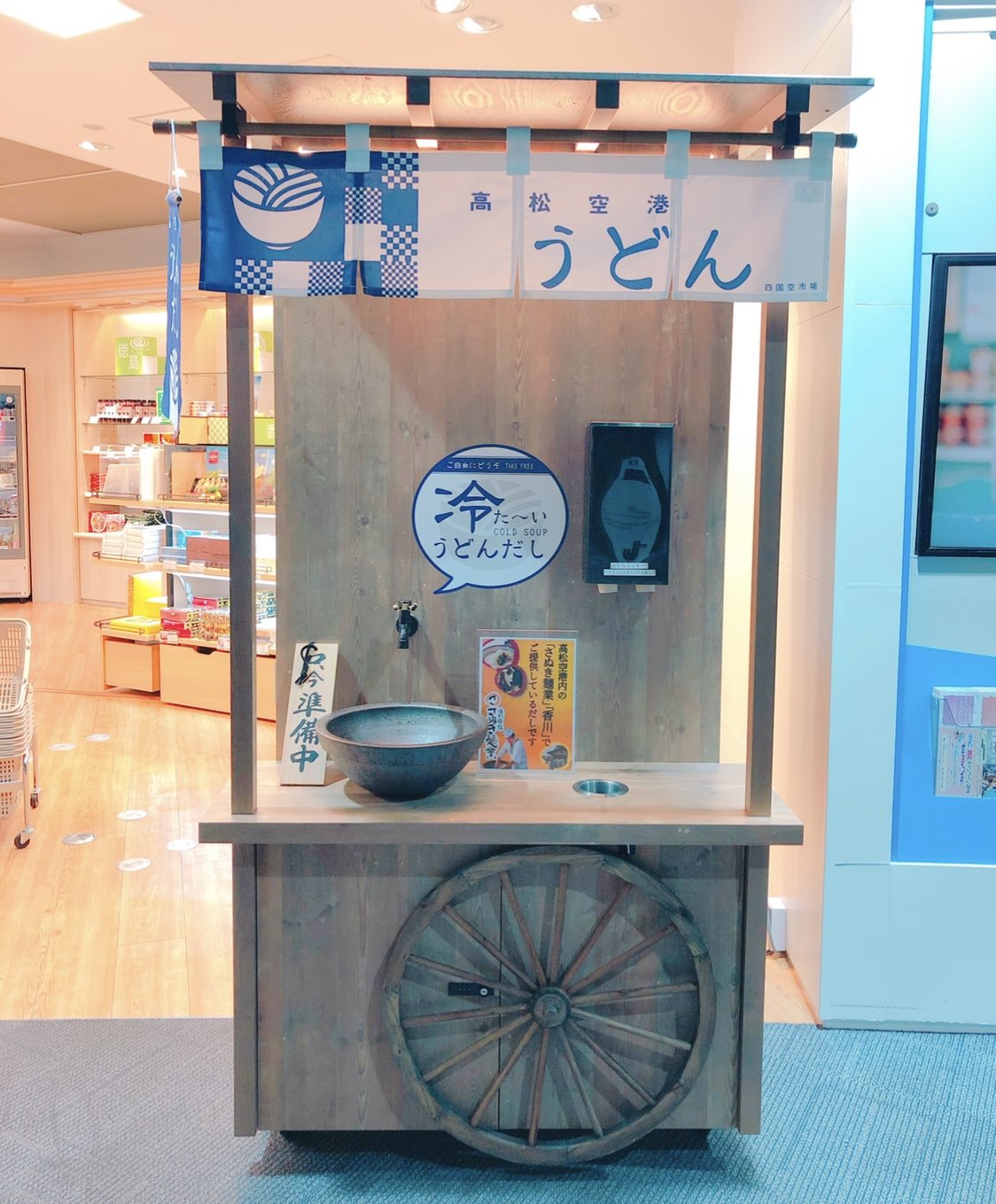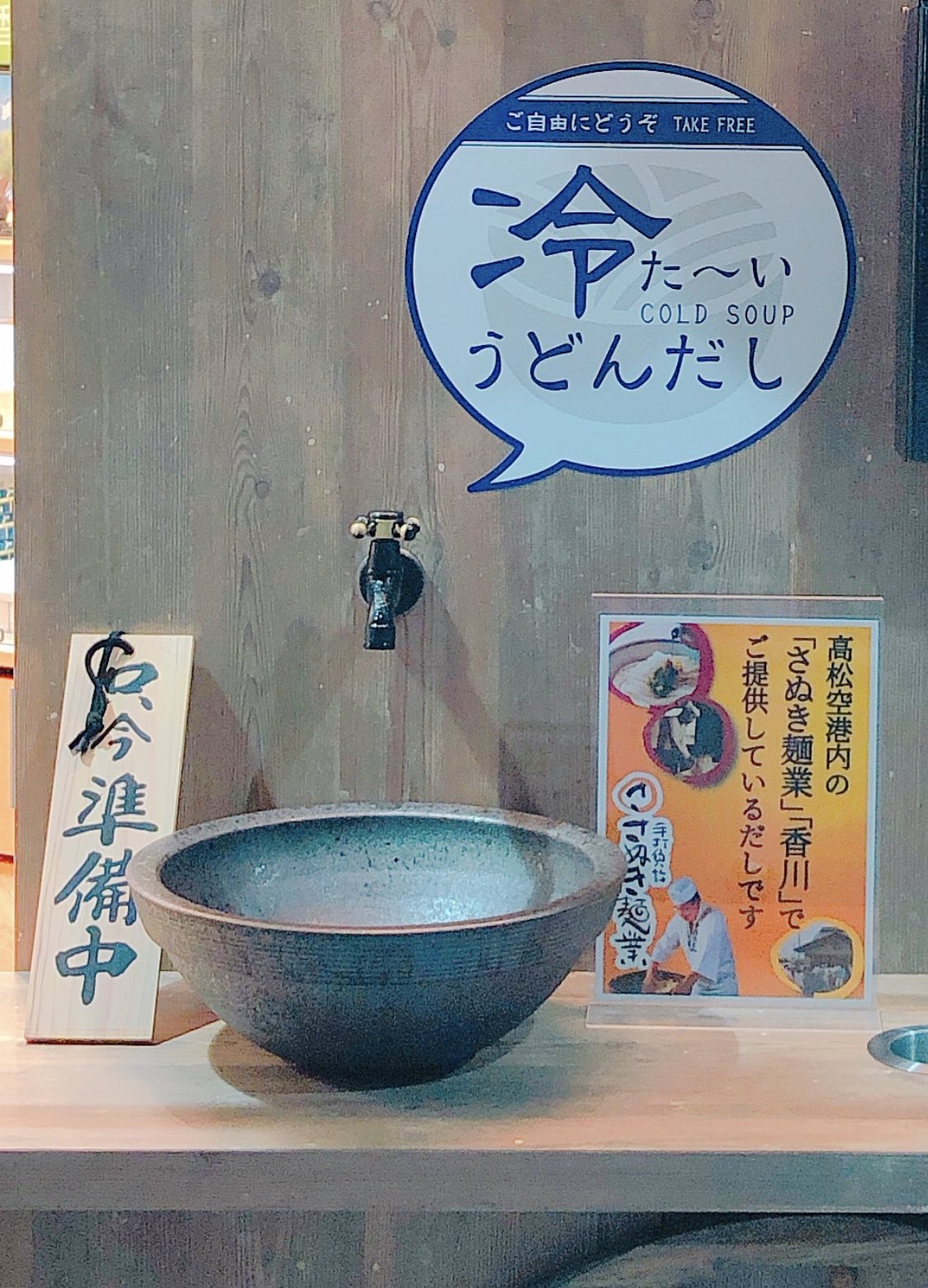 香川の高松空港には本物の出汁サーバーがあって誰でも飲めるんだけど、本当に出汁サーバーしかないから、うどんは自分で持っていかないといけない…香川県民ならうどんくらい常に持ち歩いてるだろという謎の圧力 pic.twitter.com/xb5alXecXk
