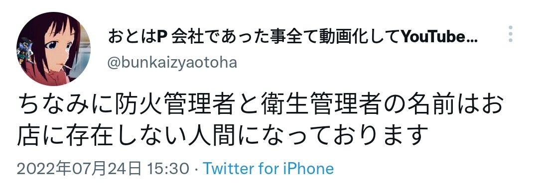 — おとはP 会社であった事全て動画化してYouTubeだけじゃないさまざまな媒体に投稿します (@bunkaizyaotoha) July 24, 2022