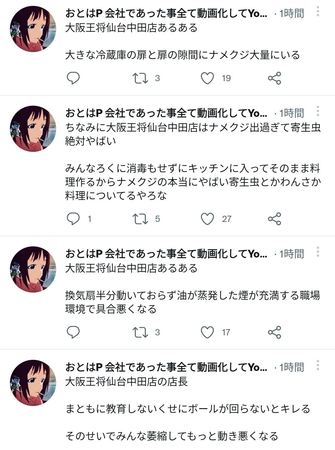 【悲報】大阪王将 仙台中田店さん、従業員に厨房がナメクジまみれであることをバラされる@bunkaizyaotoha pic.twitter.com/ReqRb8L6n2