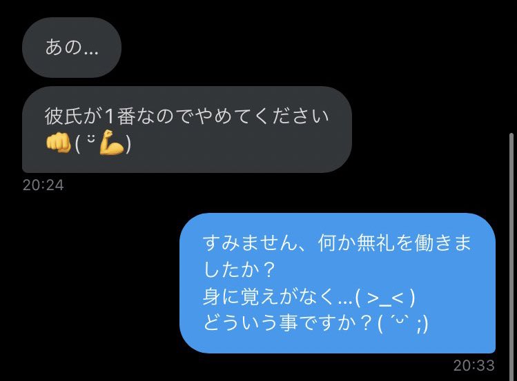 彼女側のツイートに対して彼氏より先にいいねしたらDMで叩かれるから鬱 pic.twitter.com/yx3ssQRwcQ