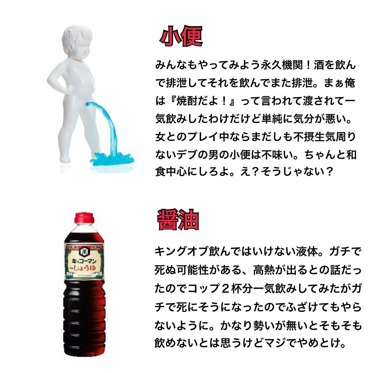 - しょうゆ飲みは赤紙回避に使われたほどのヤベエ実績があるからマジやめとけ