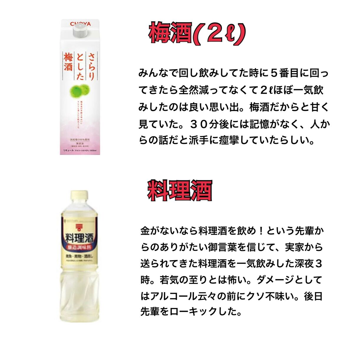 - え、梅酒?って思ったけどそりゃ2ℓ一気飲みはアカンでしょ