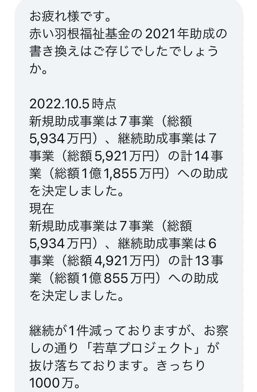 赤い羽根福祉基金、2021年度助成事業決定のお知らせを書き換え若草プロジェクトだけ削除した模様 https://t.co/lRr1RRmJ1r #Togetter @togetter_jpより
