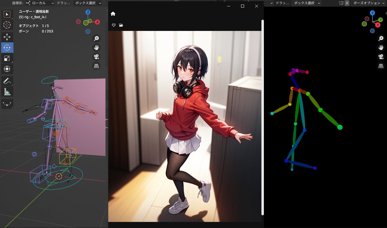 そうでもない、学習パターンに自作キャラの3面図を追加するだけでボーンに沿って自作のキャラの絵が生成できる。 何なら3Dソフト側でボーンと生成自の目安に色分けしたメッシュにアニメーションさせてフレーム単位で生成して合成すれば個人で本格的なアニメすら作れる。