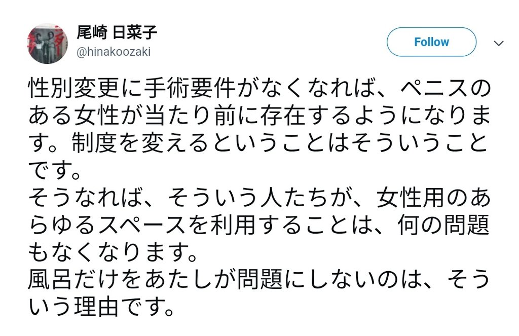女体で男性主張する人は、男性トイレ、男性風呂入るとか話全く聞かないなぁ