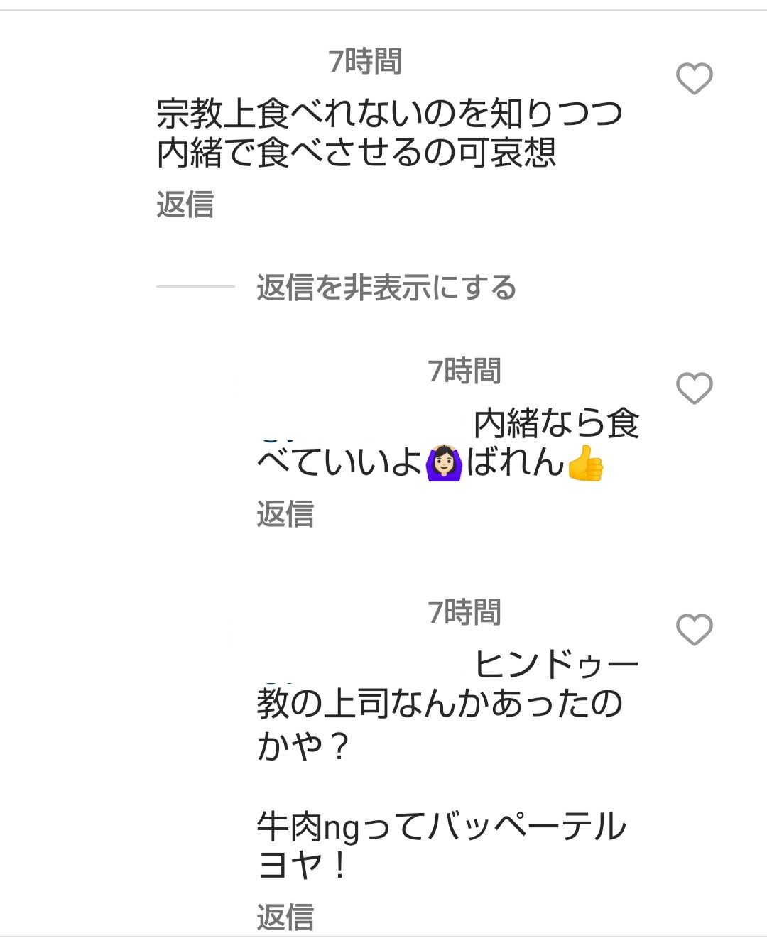 来日中に牛食うタイ人とかヒンドゥ教徒わりと多いけど豚肉は心底嫌悪してるパターンが多い