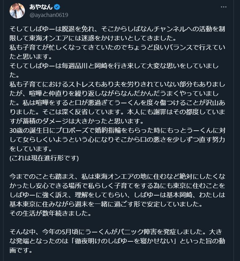 【東海オンエア騒動】あやなん、夫しばゆーの心が壊れた経緯を明かす
