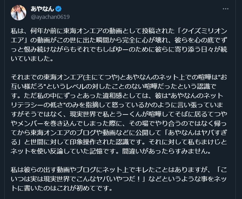 客観的に見て、贔屓なしに見てもあやなんの対応の仕方が最終的にはしばゆーを壊したし、東海オンエアを壊したよ。