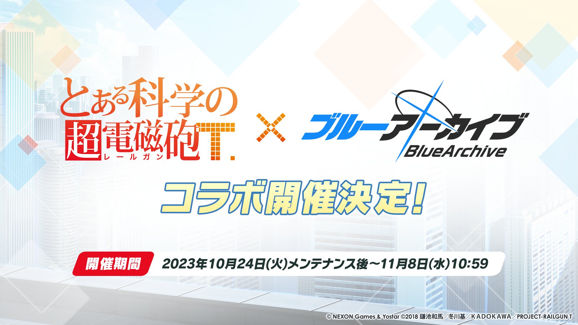 10/24(火)のメンテナンス後、「とある科学の超電磁砲T」と「ブルーアーカイブ」のコラボイベント「とある科学の青春記録」が開催です!